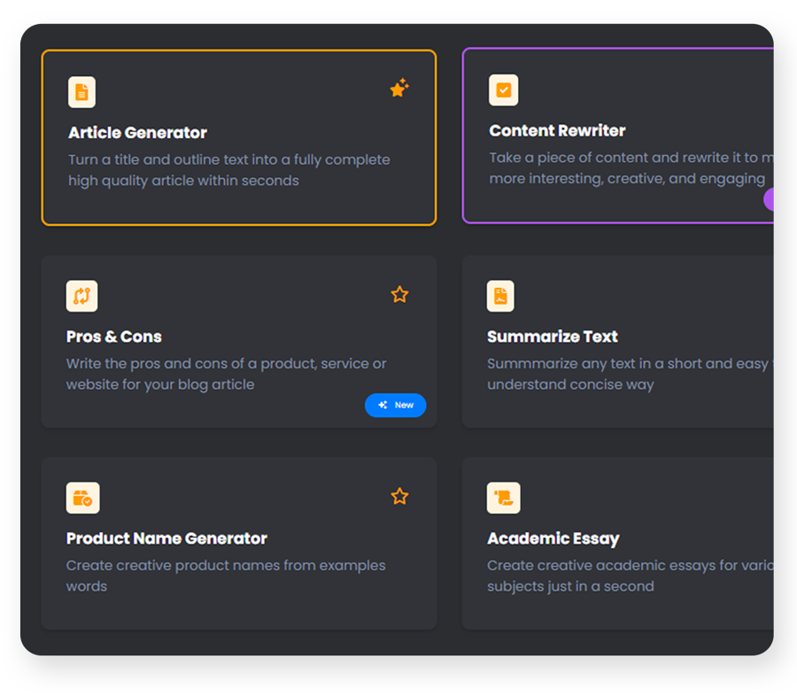 Article Generator Content Improver Blog Content Creator Ad Copy Generator Text-to-Speech and many more!